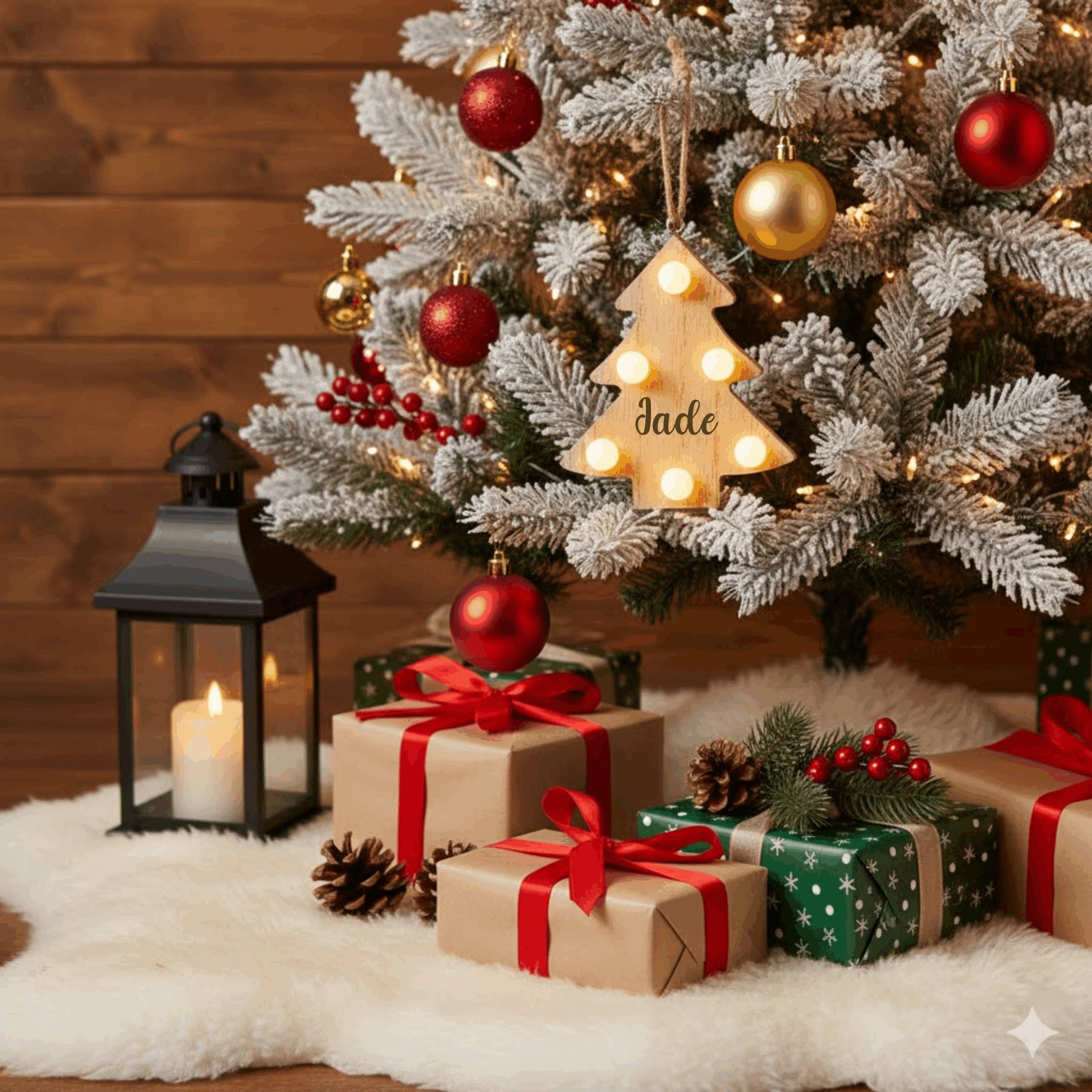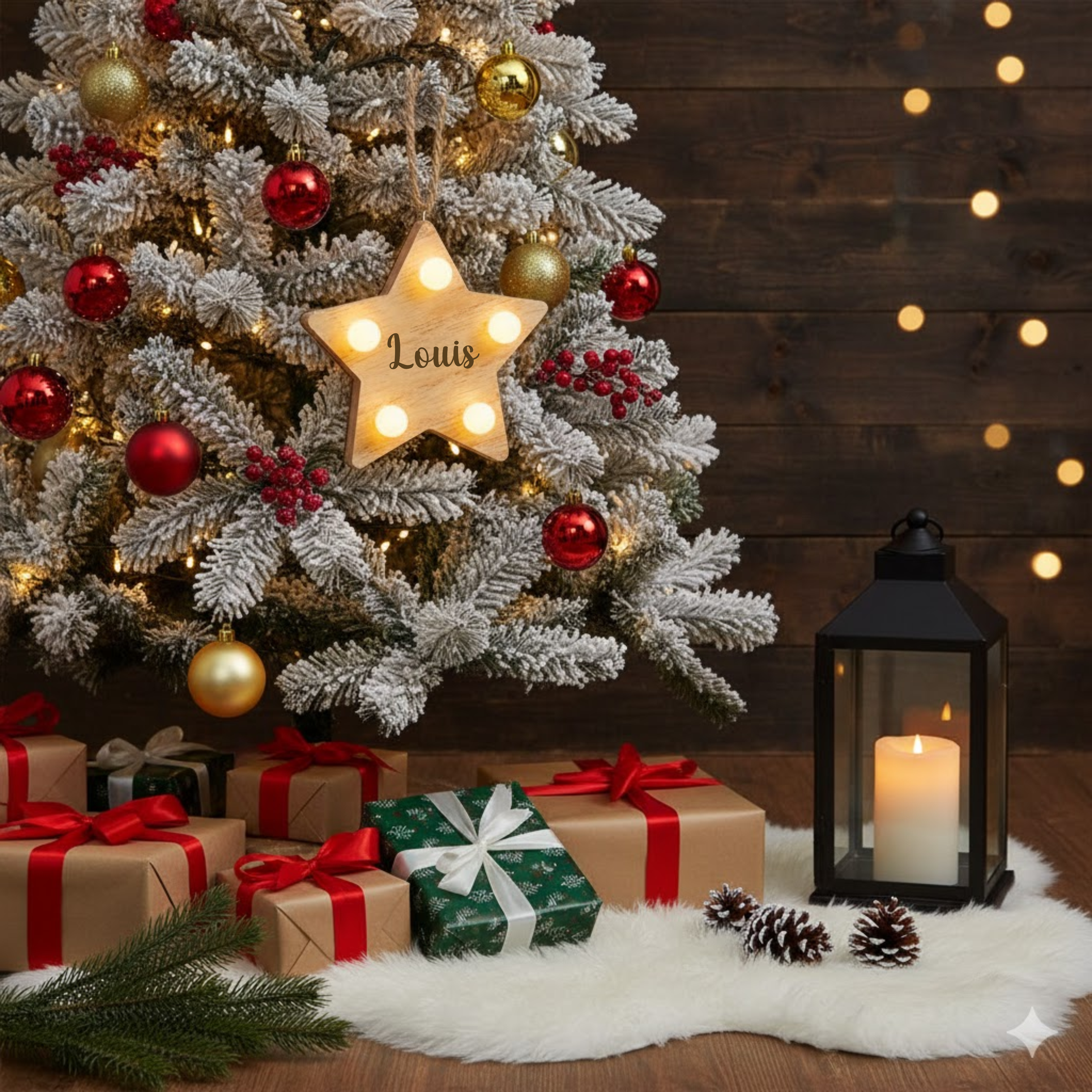 Elle diffuse une lumière douce qui met en valeur le prénom gravé et crée une ambiance magique au pied du sapin. Parfaite pour célébrer l’esprit de Noël et illuminer les yeux de vos proches ! ✨